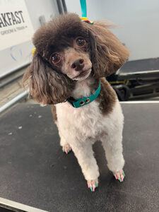I have certifications in skin and coat, as well as being certified in animal CPR. I love going to seminars to learn all of the up to date trends and to brush up on my skills. My favorite part of grooming is learning a dog’s personality and the creativity of it all. Whether it’s a teddy bear face, a crazy poodle look, painting a dog’s nails, or even doing a Mohawk, I’ve done it all. My favorite types of dogs to groom are Doodles, Border Collies, Pomeranians, and Poodles.